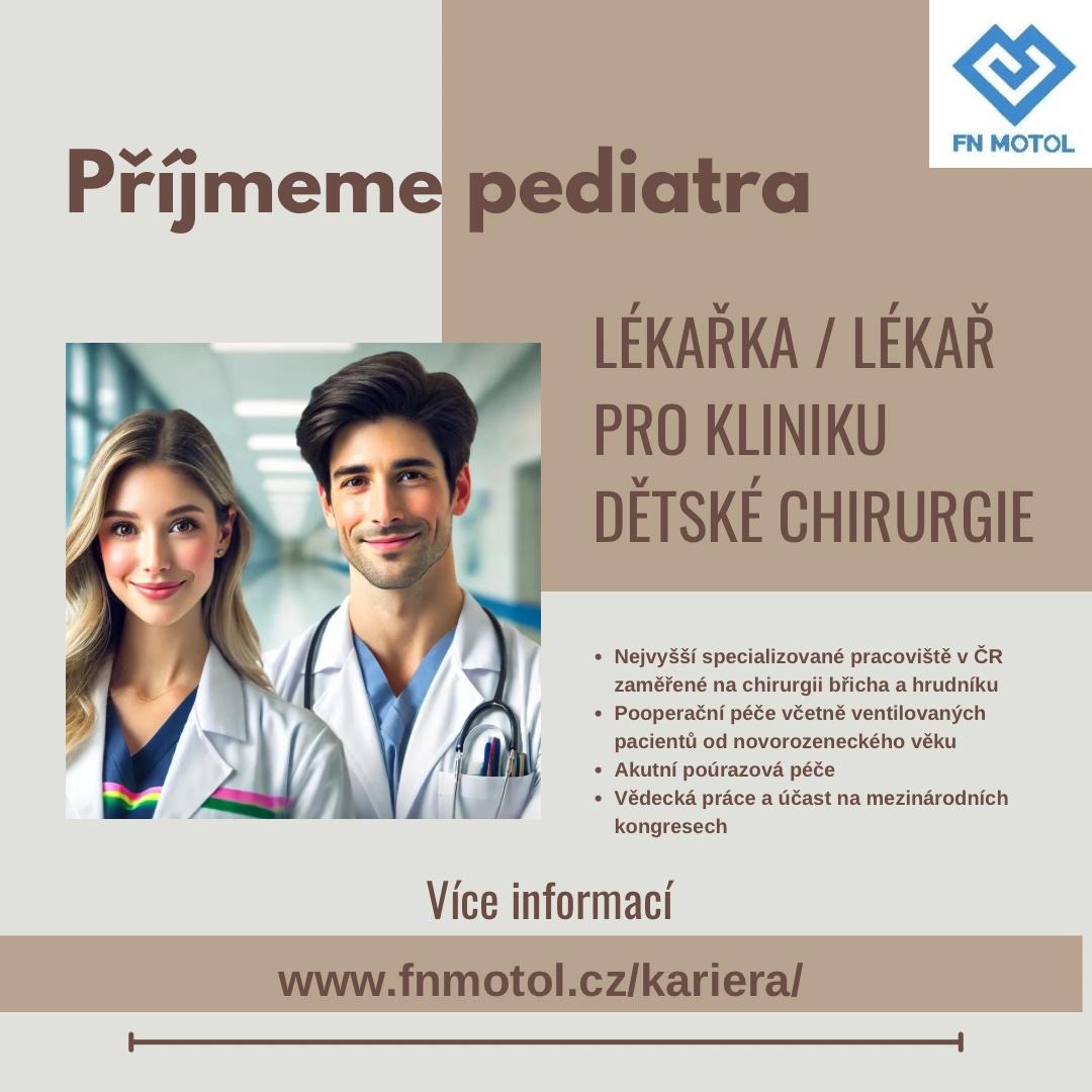 KDCH FN Motol přijme lékaře - CHIRURGA a PEDIATRA
